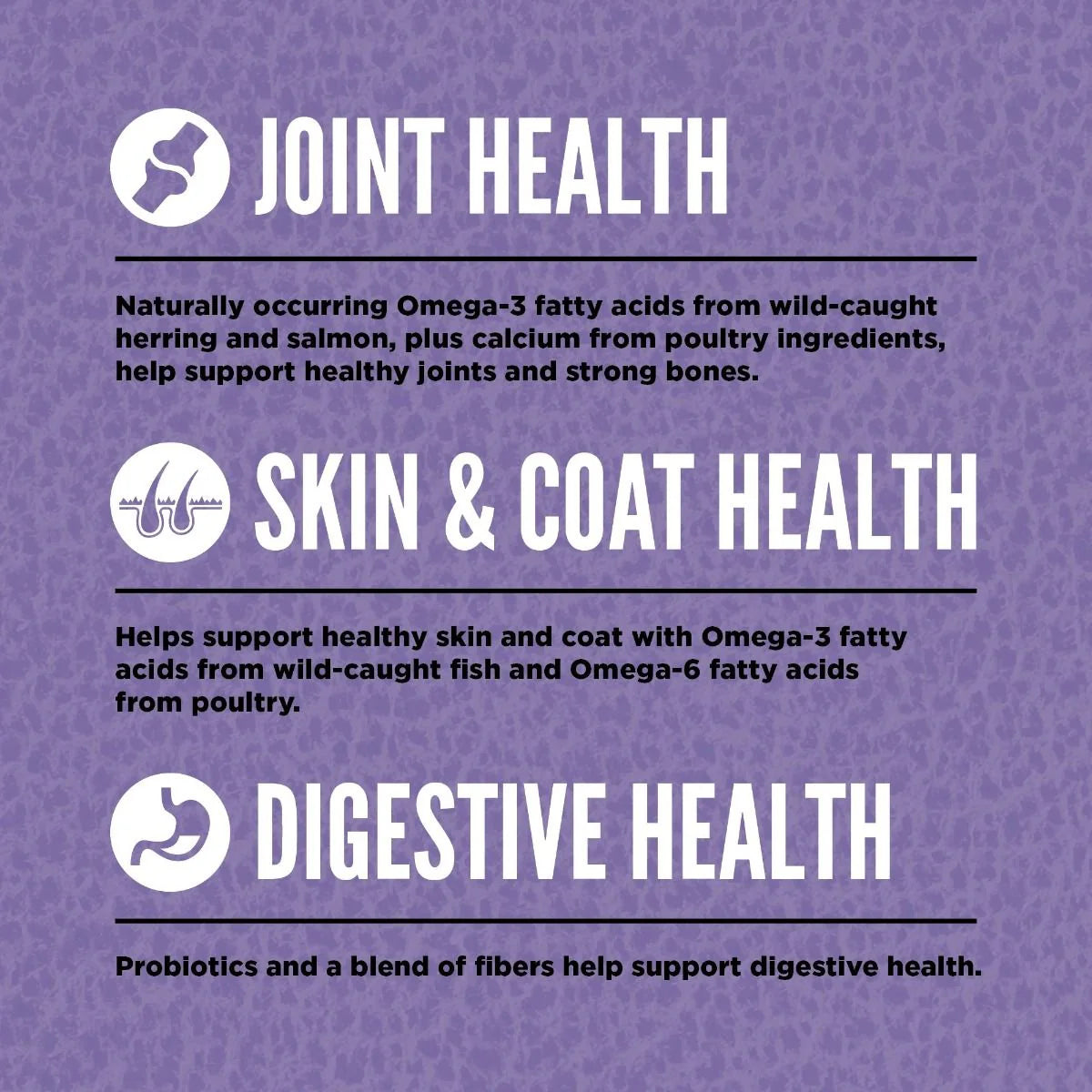 Help your large breed dog thrive with a Biologically Appropriate diet packed with whole animal ingredients. Our ORIJEN™ Large Breed Adult diet is tailored to the unique needs of large breed dogs, and it helps support key health benefits including Joint Health, Skin & Coat Health and Digestive Health. Crafted with 85%1/2 quality animal ingredients like fresh or raw3 chicken and turkey, and wild-caught fish, this recipe is rich with nutrients that help your large breed dog be their best. Packed with WholePrey animal ingredients like organs, this recipe is made with the most nutrient-dense, succulent parts of the prey to deliver the nourishment large breed dogs need. The result is a diet for your canine companion that is beyond comparison.