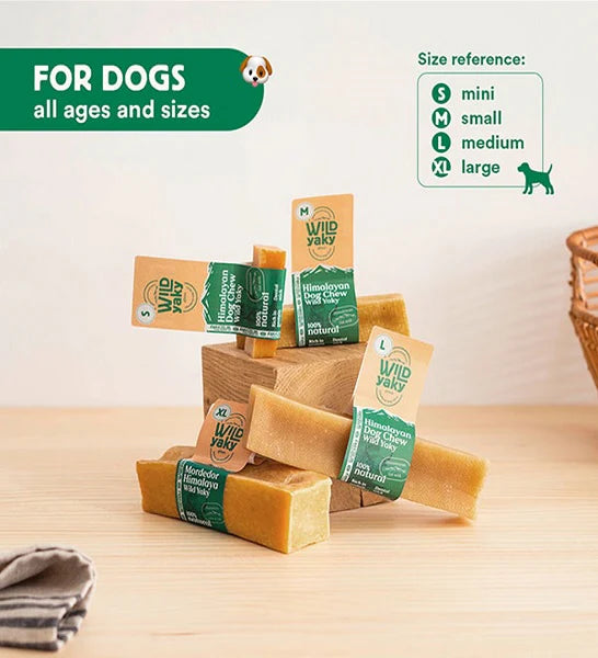 Wild Yaky dog chews are cheese bars made with Himalayan Yak milk, lime juice, and salt. Naturally long-lasting and very resistant. The perfect teether with anti-stress effects and brain stimulation. Helps maintain proper dental hygiene. Rich in protein and calcium. When the size of the Wild Yaky is too small, you can turn the pieces into a crunchy snack by heating it for 45s in the microwave. Let cool for 2 minutes before serving.